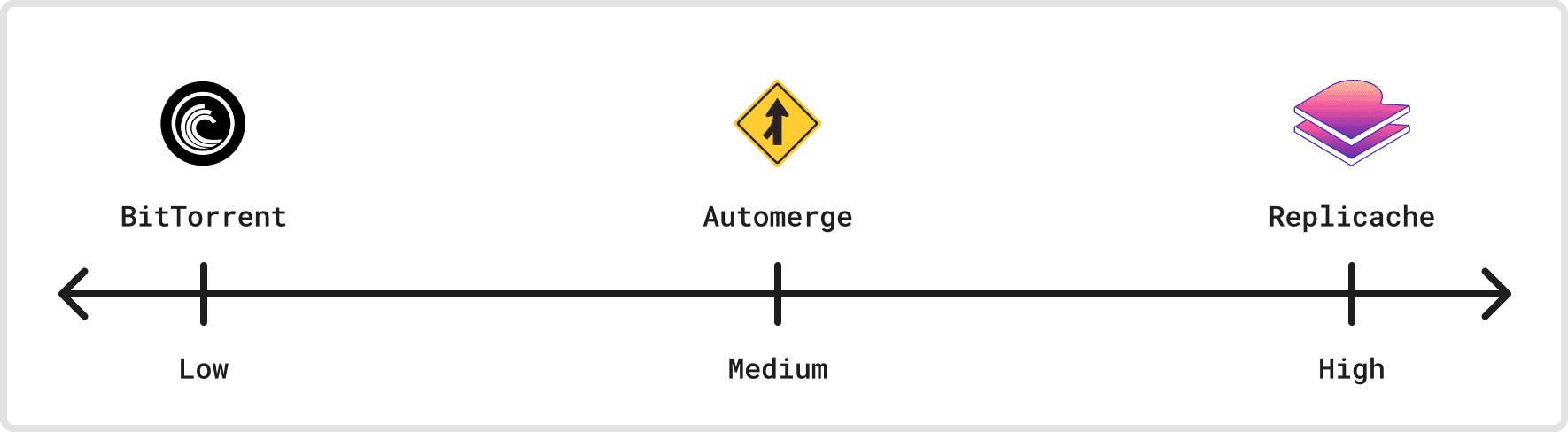 On the decentralized side, the local-first manifesto, as embodied by libraries like Automerge, aims for decentralized, open-source development where clients maintain full control over their data. Even if there is a central server, it is entirely commoditized and easy to swap out for another implementation. For file sync, protocols like BitTorrent with distributed trackers avoid centralization entirely.