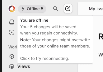 In the middle we have apps that mostly work while offline. Linear is a great example of this pattern, where offline changes are permitted but show up in the UI with a small disclaimer.