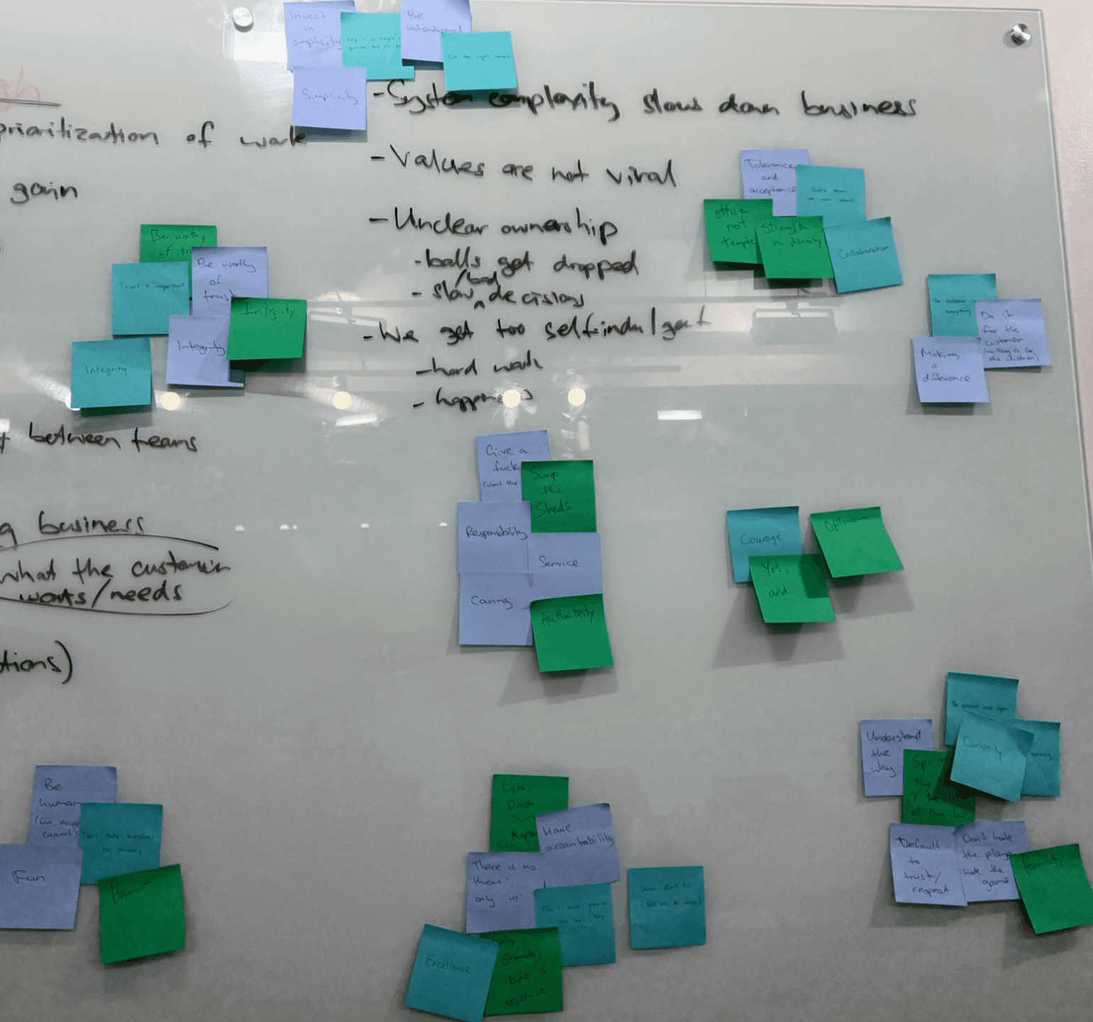 We individually brainstormed values on post-it notes then tried to group them into clusters on the whiteboard.