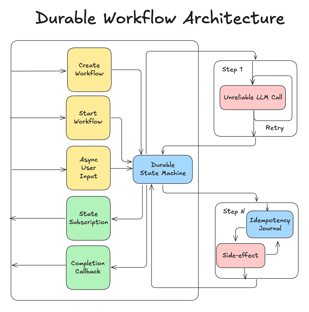 Apps are increasingly using long-lived workflows, such as agentic systems, that make many requests to unreliable third-party APIs. For these apps, it’s especially important to anticipate failure modes and use solid abstractions with strong guarantees.