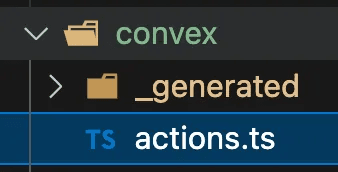 In your project, create a file named convex/actions.tsto implement the Action function.