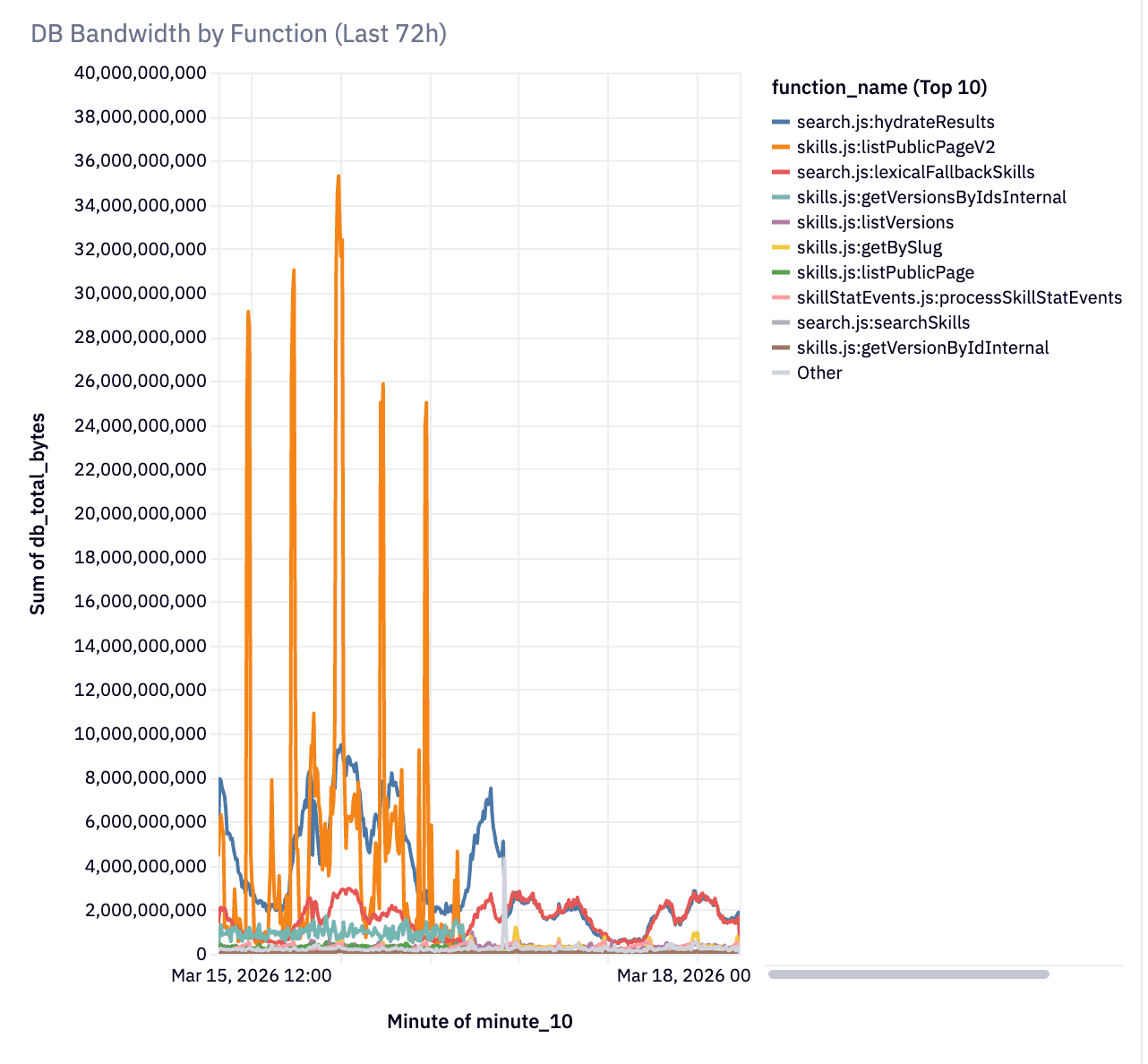 6Each cycle, the top offender gets 10-100x cheaper and the next layer reveals itself. On ClawHub, this loop ran eight times over four days. The site served over a million visitors that week while we rewired the data layer underneath them. No downtime, no maintenance windows, no user-facing errors.